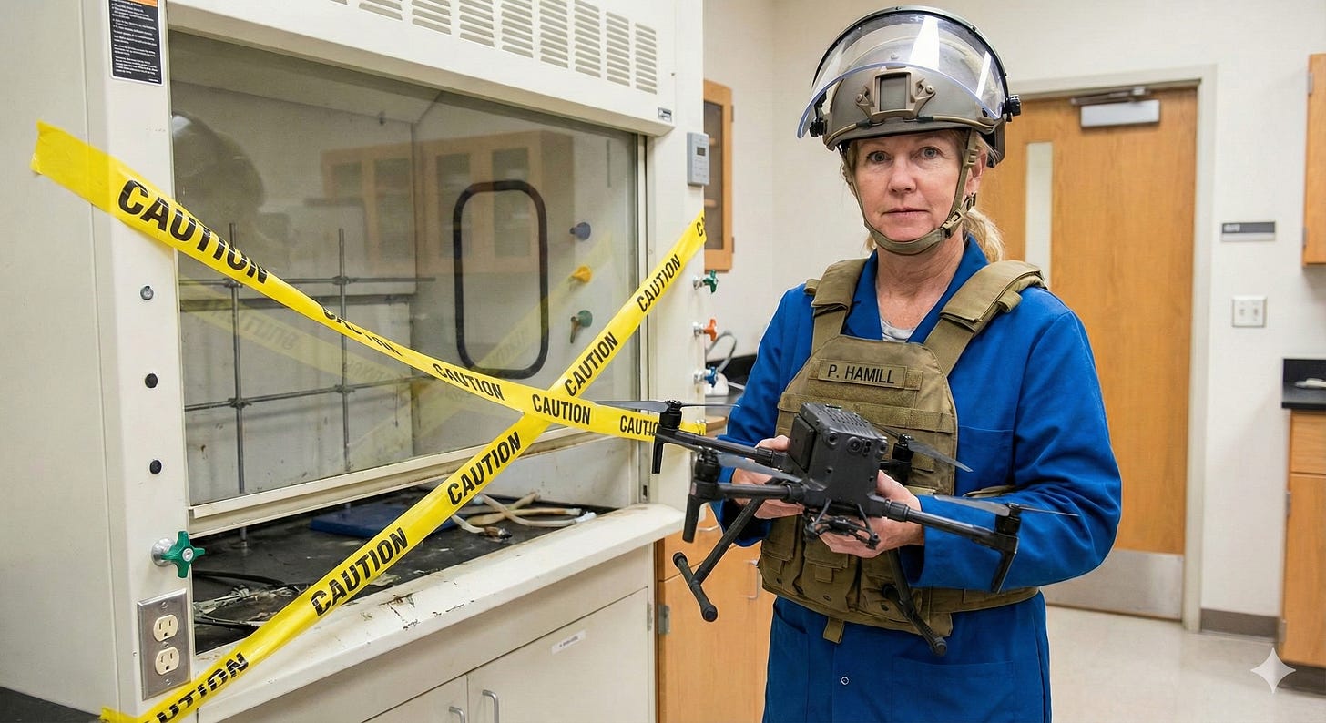 The strike, carried out by a modified DJI Mavic equipped with a small explosive payload, destroyed the hot plate along with approximately $4,200 in glassware, a nearly-complete natural product synthesis, and the will to live of graduate student Kevin Marsh, who was heating a reaction at the time.